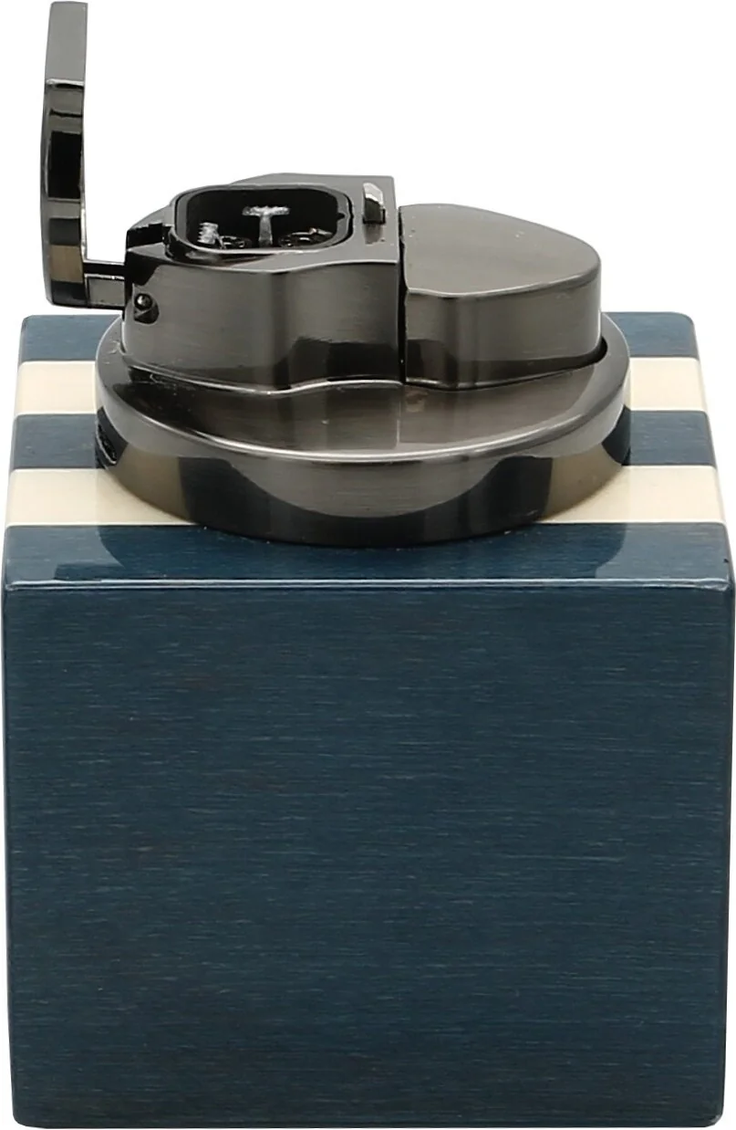 The adorini Cuba Te Amo Jet Table Lighter is an elegant and powerful table lighter from the adorini brand, adding another accessory to the Cuba Te Amo collection. The Cuban flag adorns the table lighter, which features four jet flames. The ignition is protected from dust and lint by a cover that automatically opens when the ignition button is pressed. Lighting the lighter reveals an impressive and bright red flame, enhancing your cigar ritual effortlessly. The gunmetal ignition provides a modern contrast to the wooden cube body with multiple layers of high-gloss lacquer, while the wood grain remains visible, very chic, in our opinion. On the underside, you will find the valve for venting and refilling the lighter. We highly recommend using pure and high-quality lighter gases – your favorite lighter will thank you. You can also adjust the flame intensity with a screwdriver here. The dimensions are 7.5 x 6 x 6 cm. A real eye-catcher and an expression of Cuban passion, this lighter is a must-have for cigar lovers. The item comes in an attractive packaging, making it ideal for gifting. Other products in the adorini Cuba Te Amo collection include two table humidors in medium and grande sizes, a leather cigar case, and a cigar ashtray.