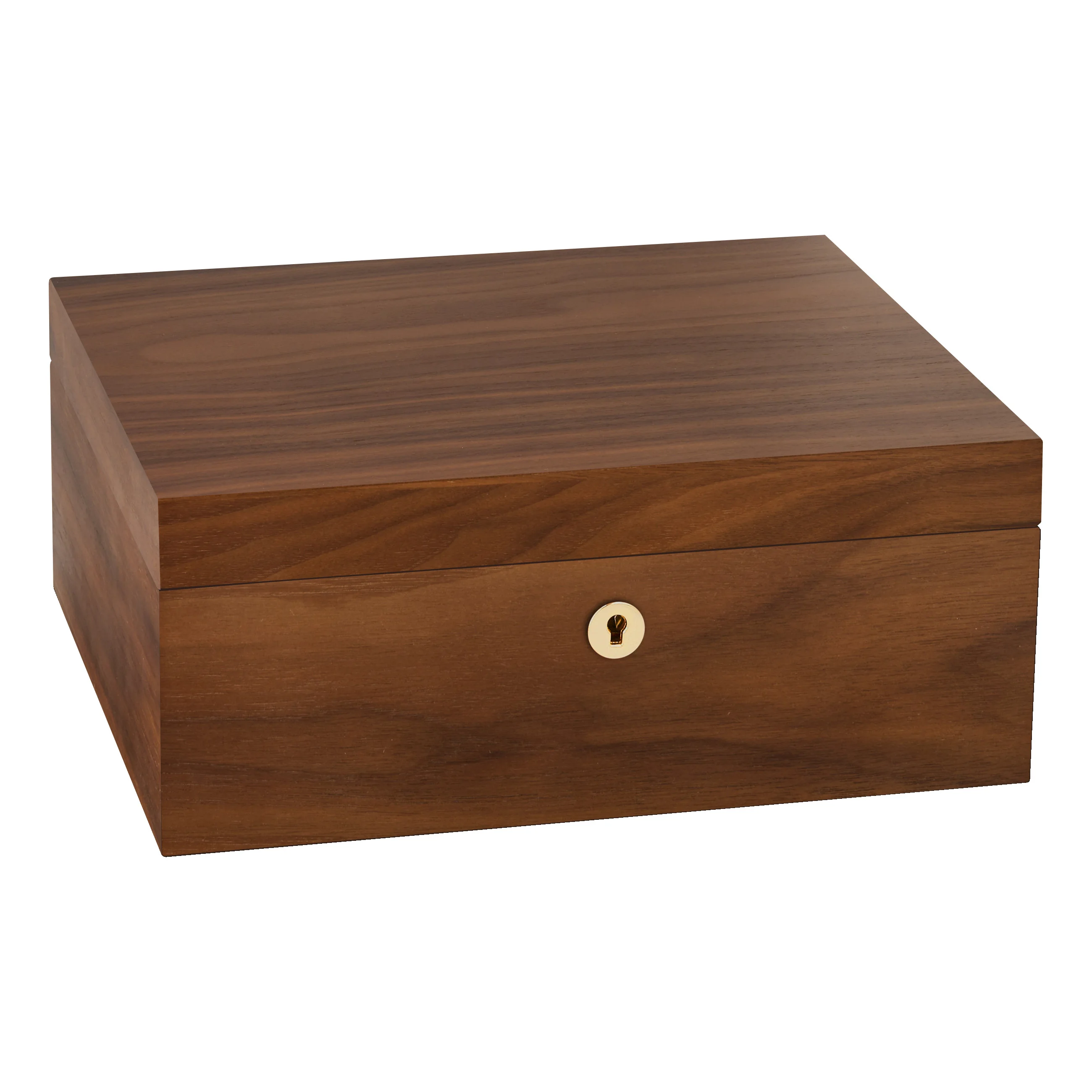 The walnut wood is distinguished by its characteristic grain with warm to dark brown tones. Thanks to its warm and natural appearance, the humidor blends harmoniously into almost any setting. Medium-sized humidors hold up to 75 cigars, providing ample space for your cigar collection.