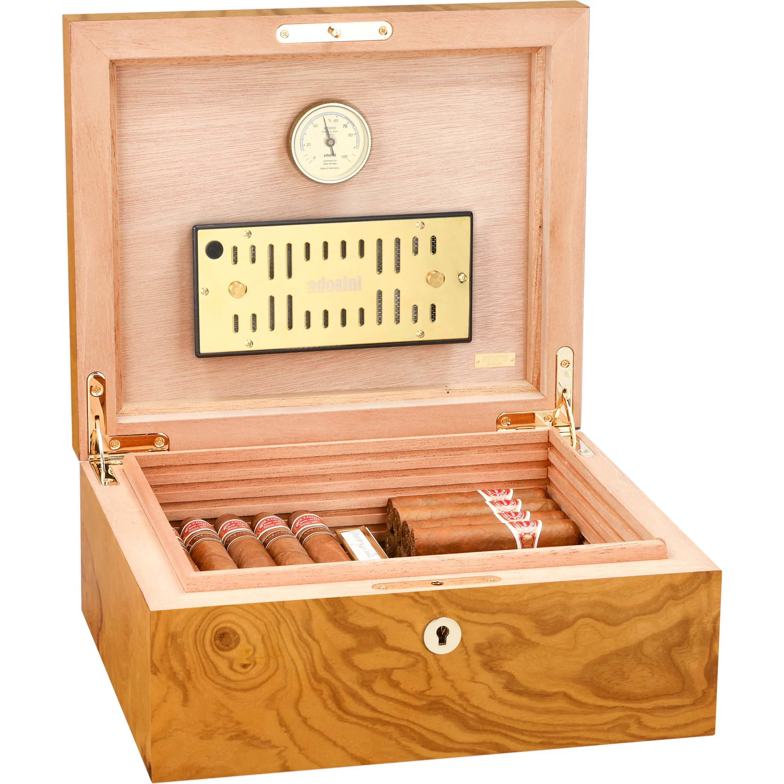 adorini Humidor Salento Oilve Burl Wood Medium Deluxe