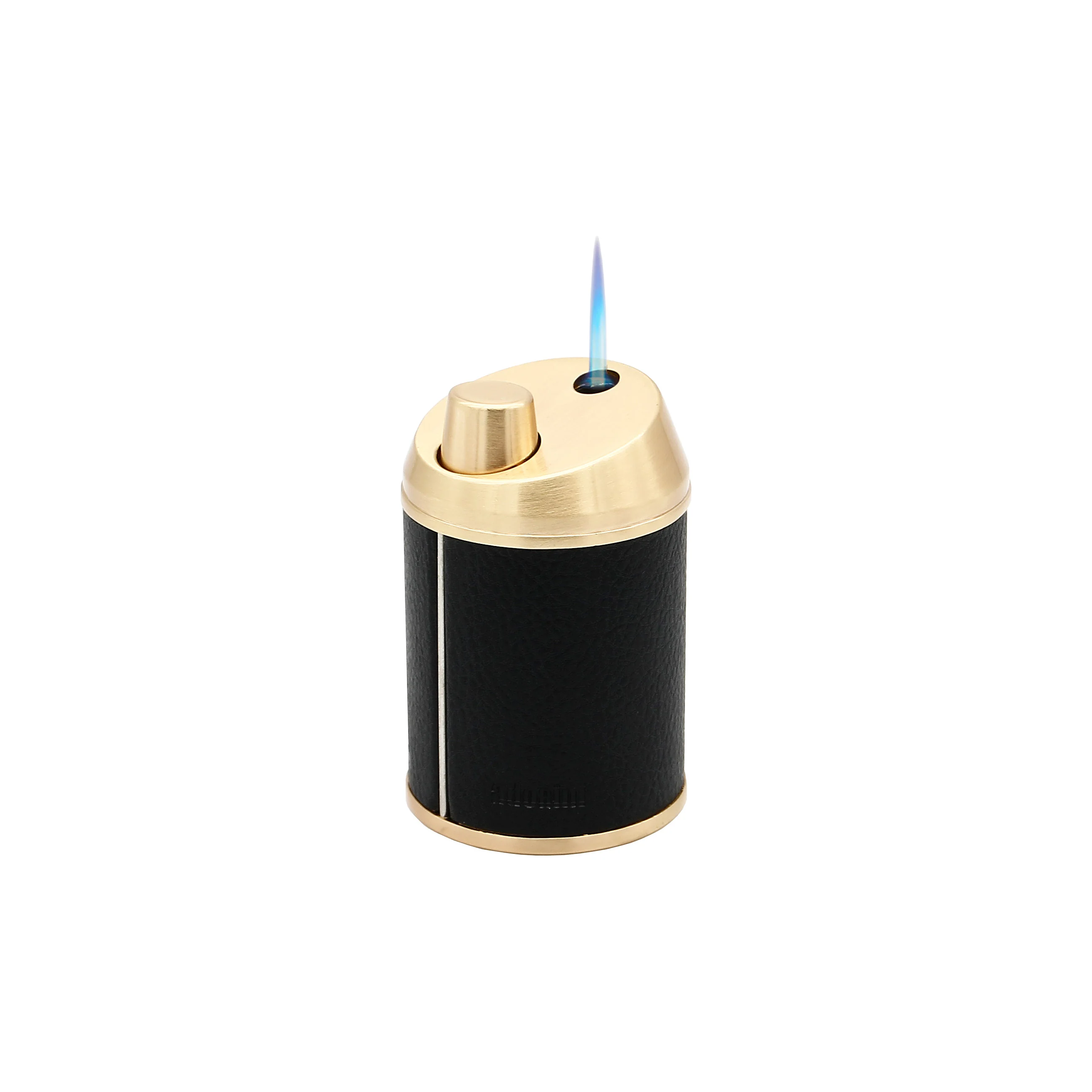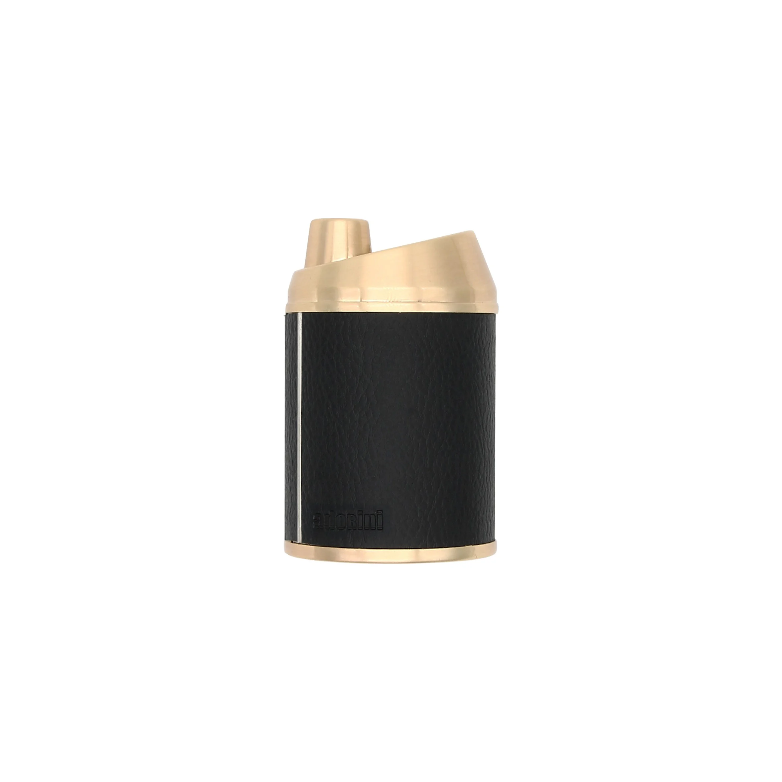 This modern adorini table lighter with jet flame combines sophisticated design with high-quality functionality. The leather-covered lighter body makes an impressive statement, perfectly accentuated by the gold ignition and the decorative edge at the base**.
