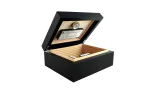 The adorini Torino Deluxe Humidor, a classic from the adorini brand, is now also available in medium size. With a capacity of 75 cigars, it offers enough space for storing your favorite cigars. It impresses with its matte black finish and silver-plated hinges, which give it a classy look. The humidor has an extra strong body and is veneered with cedar wood on the inside to ensure optimal storage conditions.