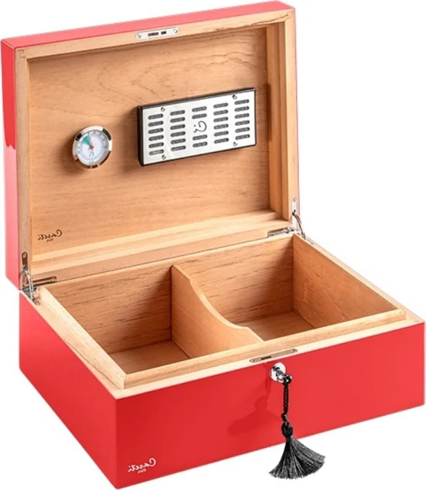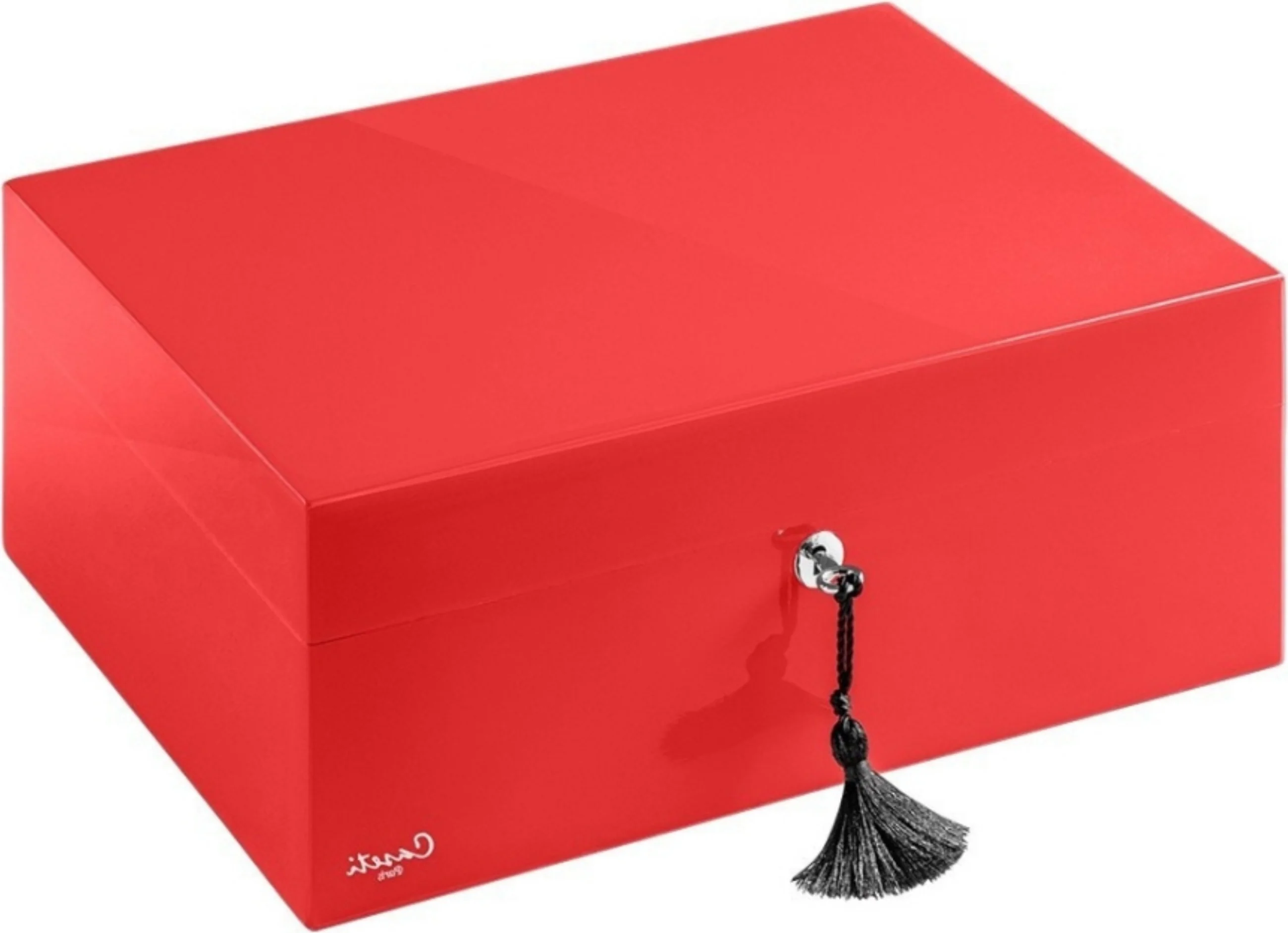 The Caseti Humidor Paris Red is a sophisticated humidor from the French brand Caseti, which immediately catches the eye with its bright red high-gloss finish. The Paris series represents exceptional design and stands out clearly from the classic, often-seen wood veneer humidors.