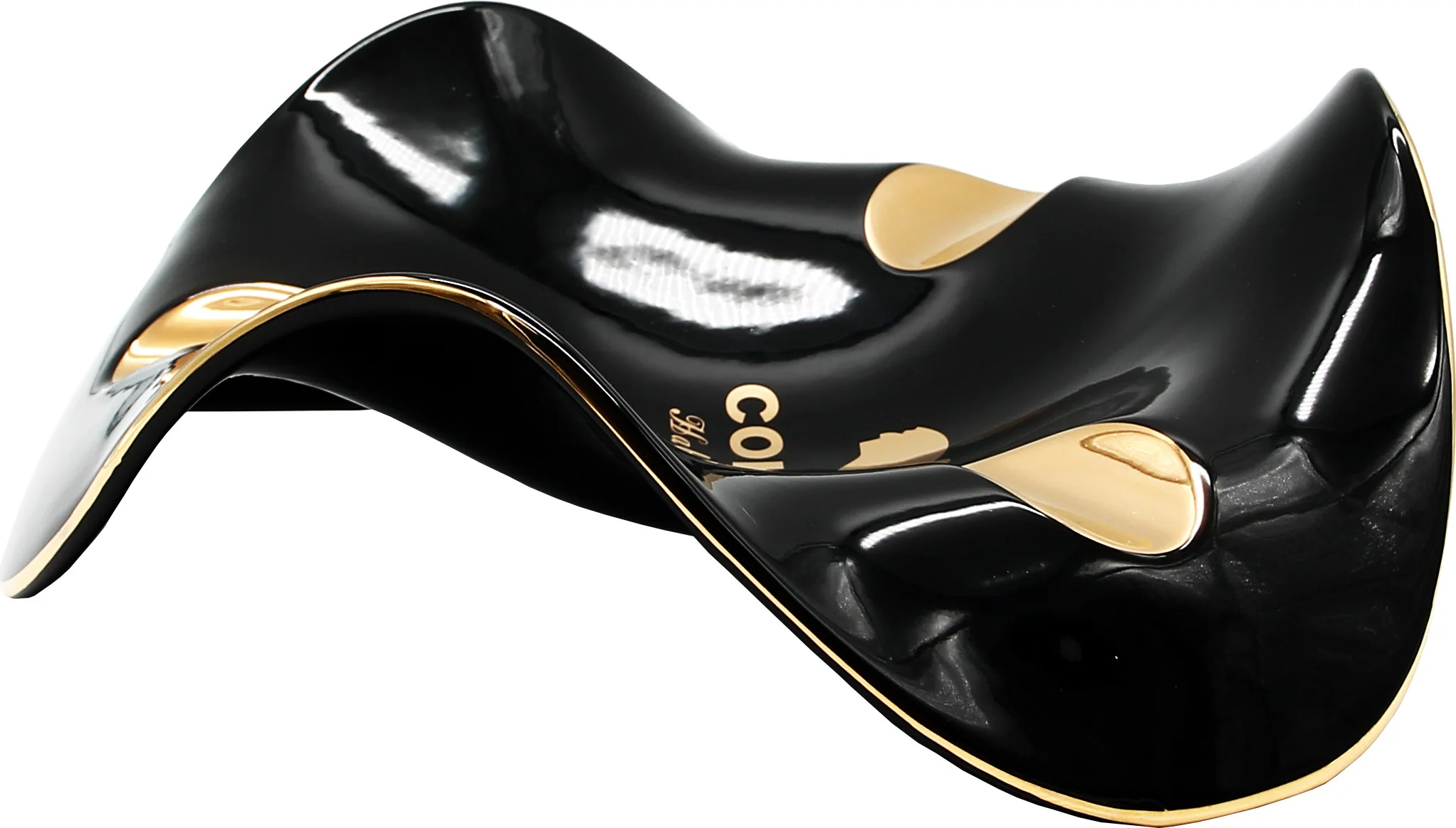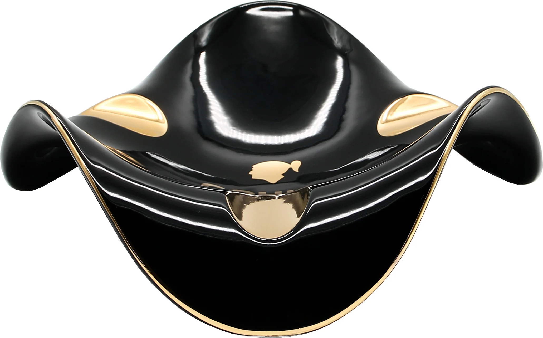 - Elegant black cigar ashtray with gold accents