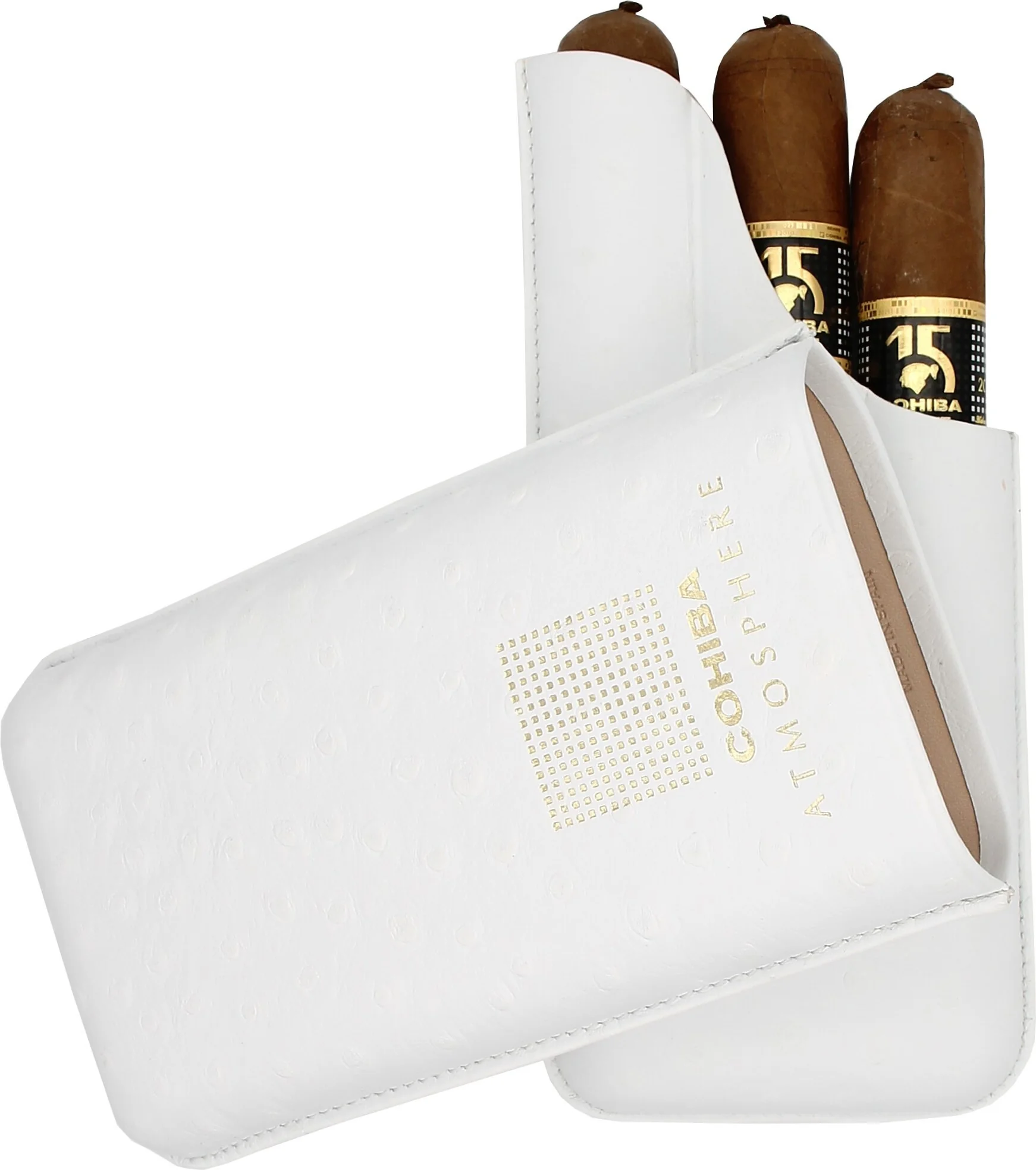 The cigar case is made of high-quality white leather with an attractive grain pattern, making it exceptionally comfortable and supple to the touch.