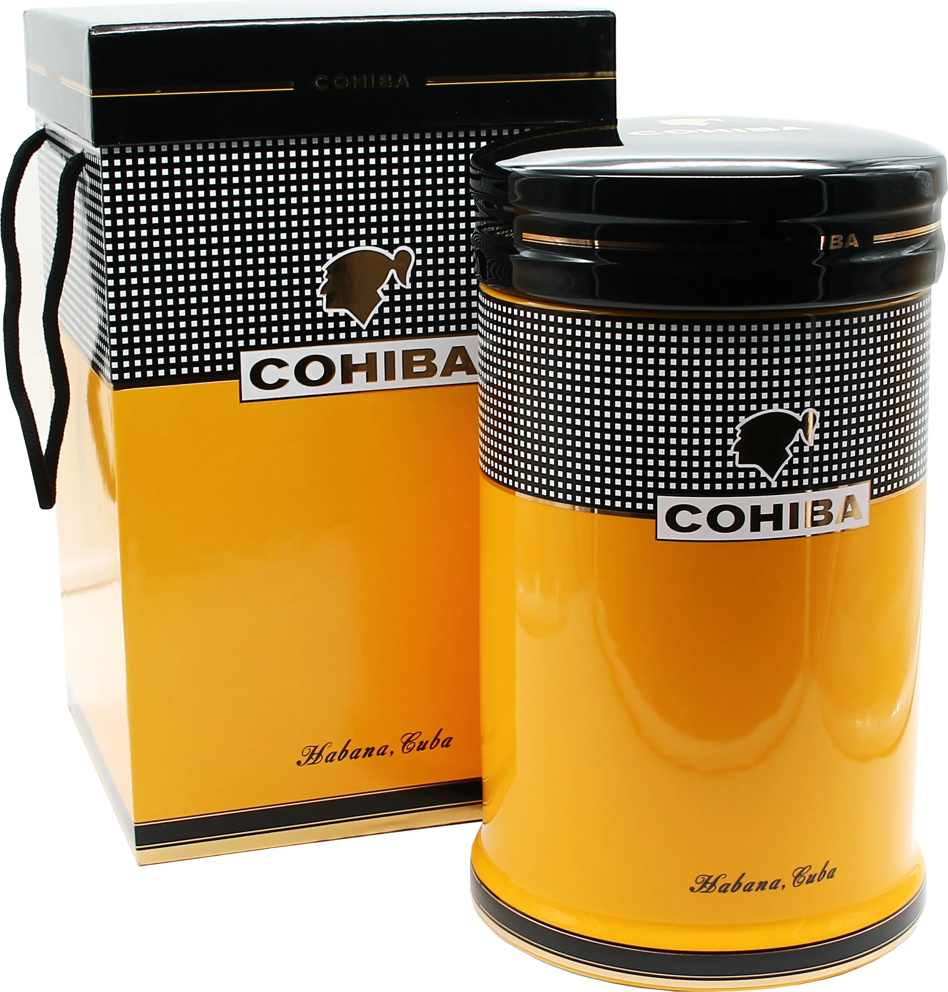 The porcelain jar has a total height of 25.5 cm and a diameter of 15.5 cm. It comes in high-quality, meticulously designed packaging, as Cohiba jars are highly prized collector's items for many aficionados.