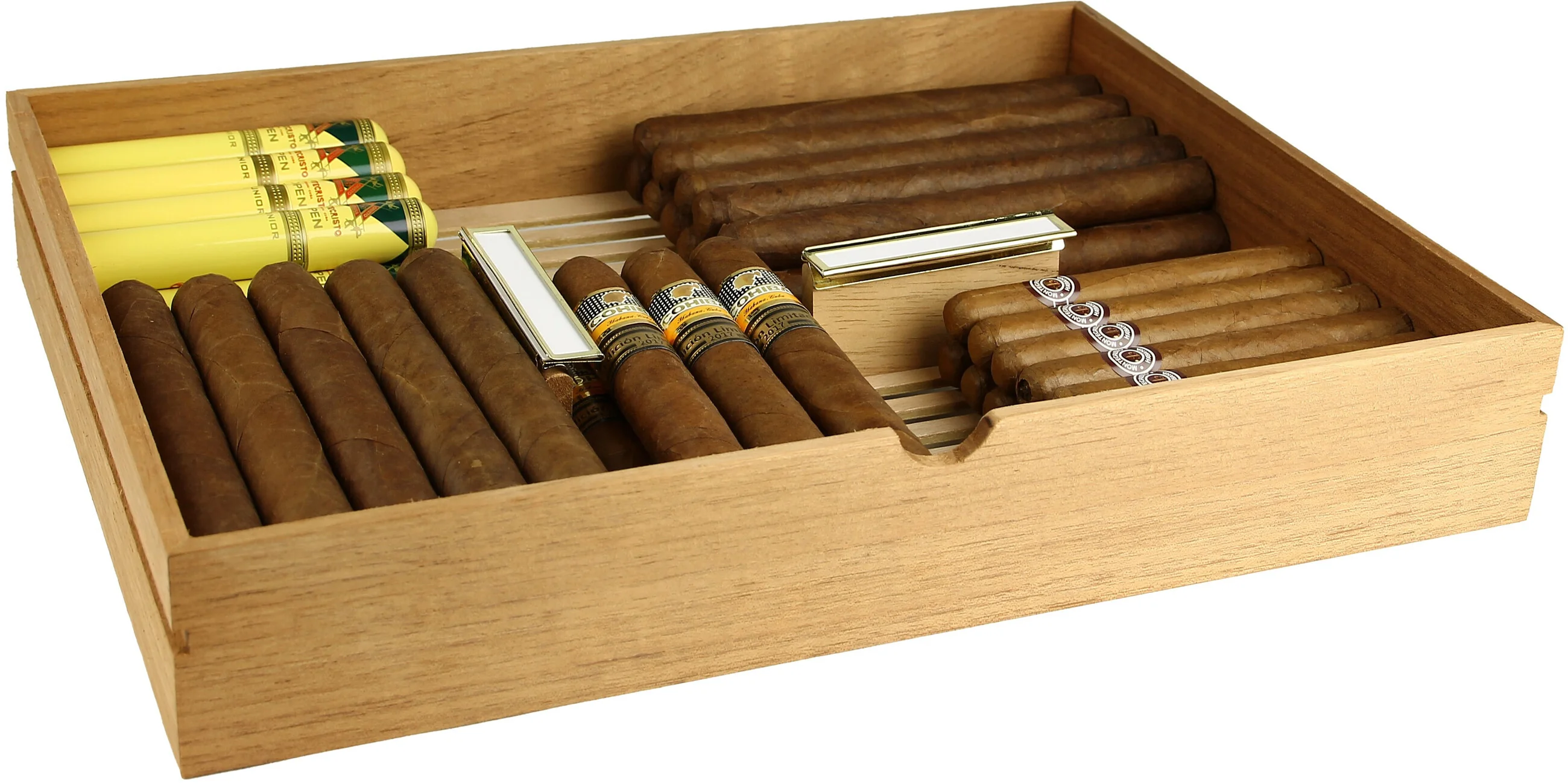 - Additional Options: In our webshop, you can also find horizontal and vertical extra dividers for subdividing and organizing the drawer. Matching label clips in gold or silver are also available to label, date, or sort your cigars by origin.