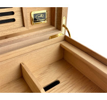 The interior of each humidor is of the finest Brazilian Spanish cedar, which offers high moisture absorption that works with a humidifier to maintain optimal humidity control. The cedar also enhances the taste and aroma of cigars, providing the ideal space for cigar aging.