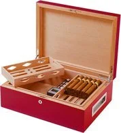This intricately crafted material also allows for a more desirable surface devoid of knots that occur with natural wood, making MDF a perfect choice for applying veneers. The veneers are expertly assembled by artisans at the peak of their abilities. The veneers create sleek, eye-catching exteriors, as well as interiors ideally suited for the preservation of cigars.