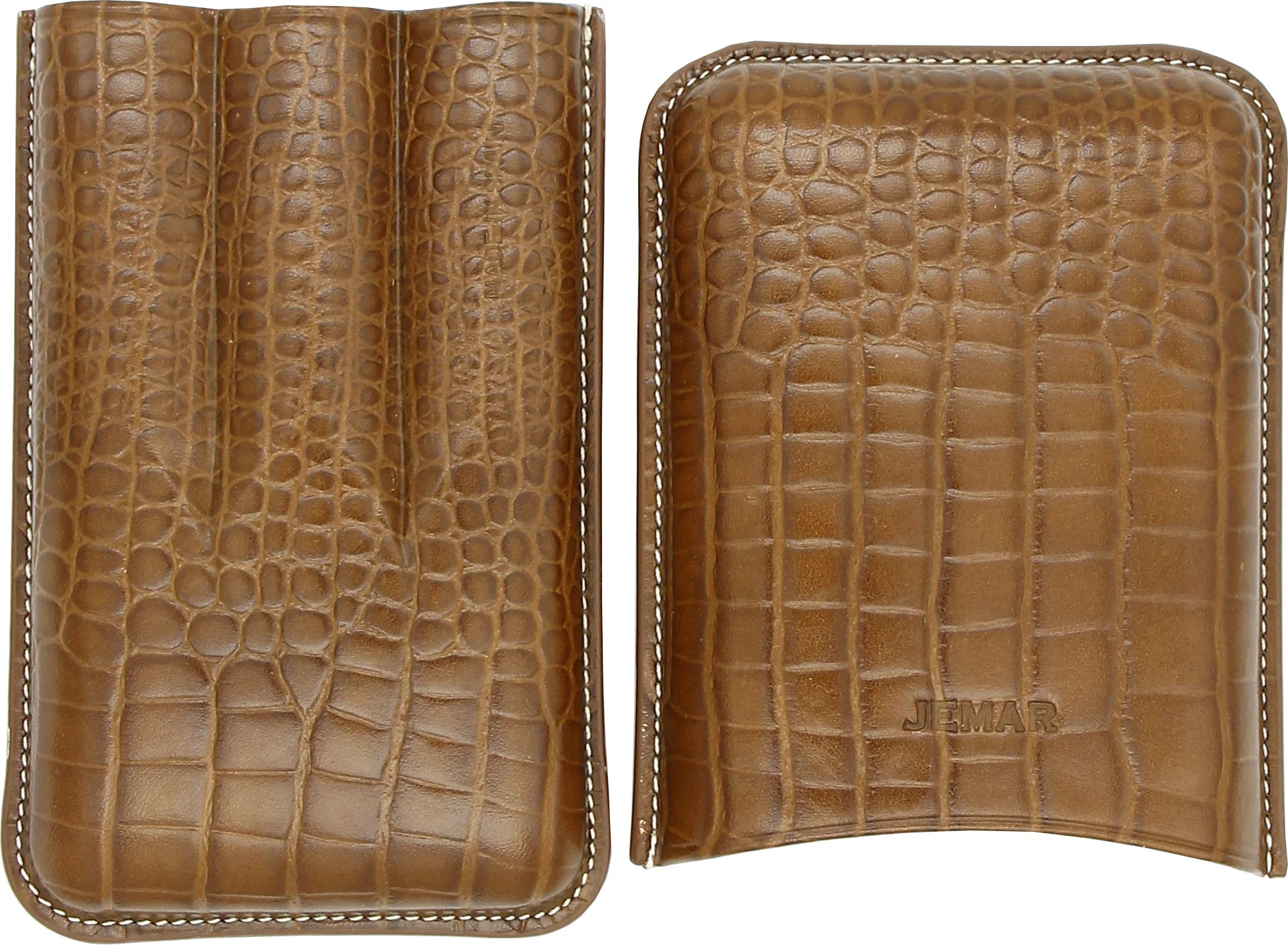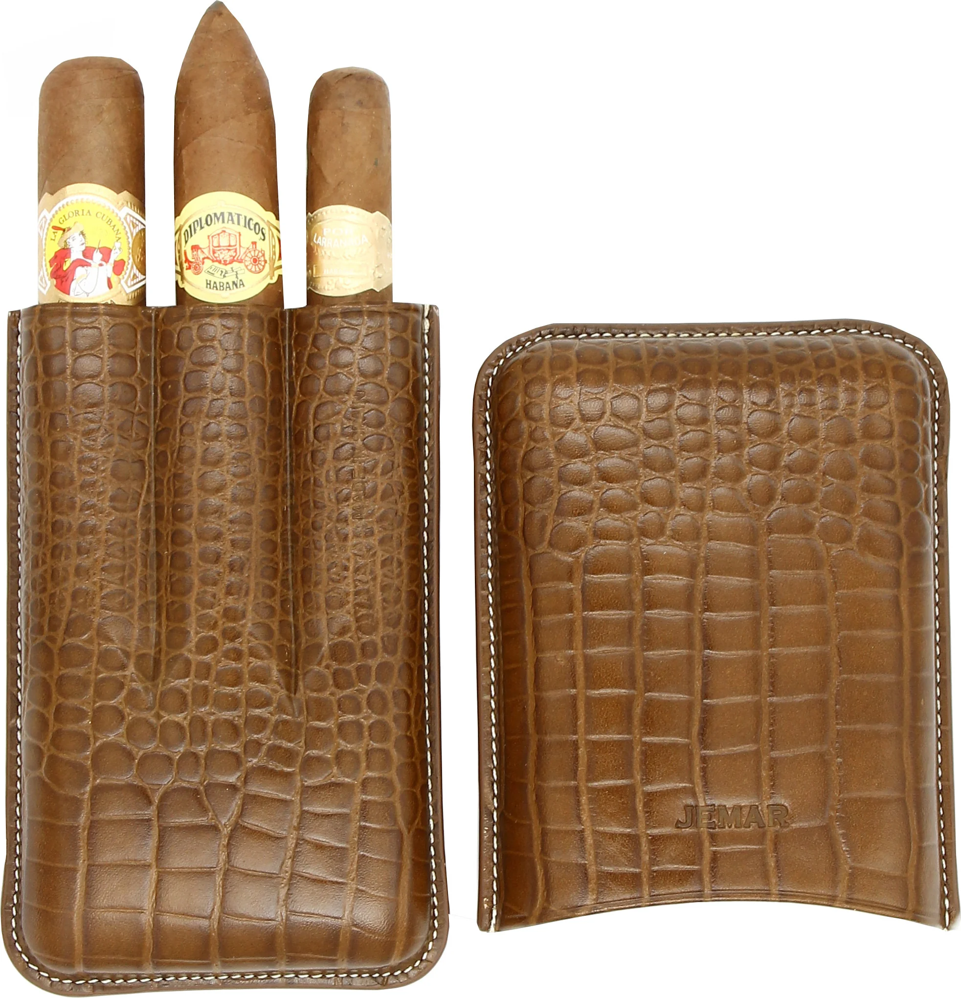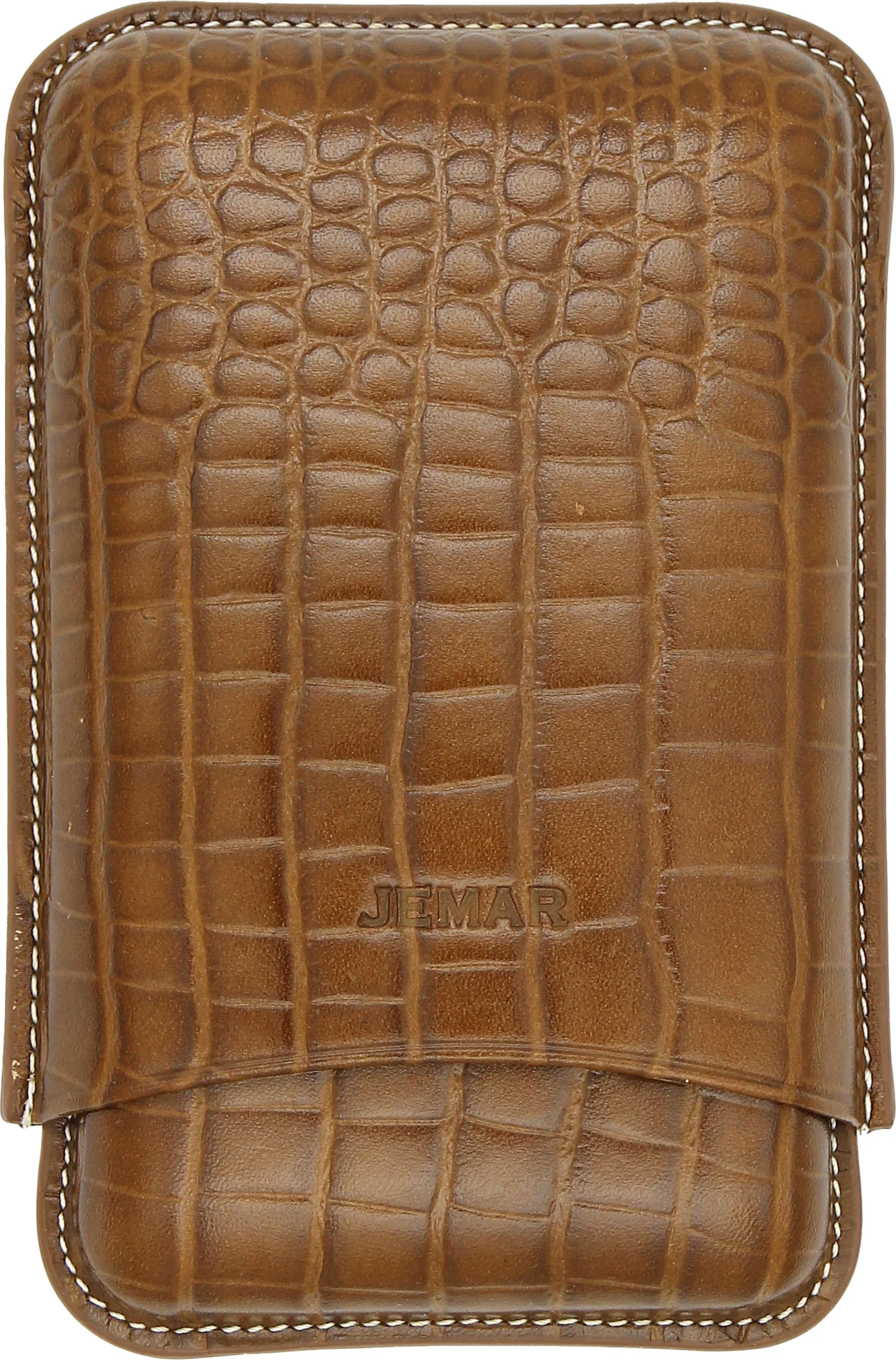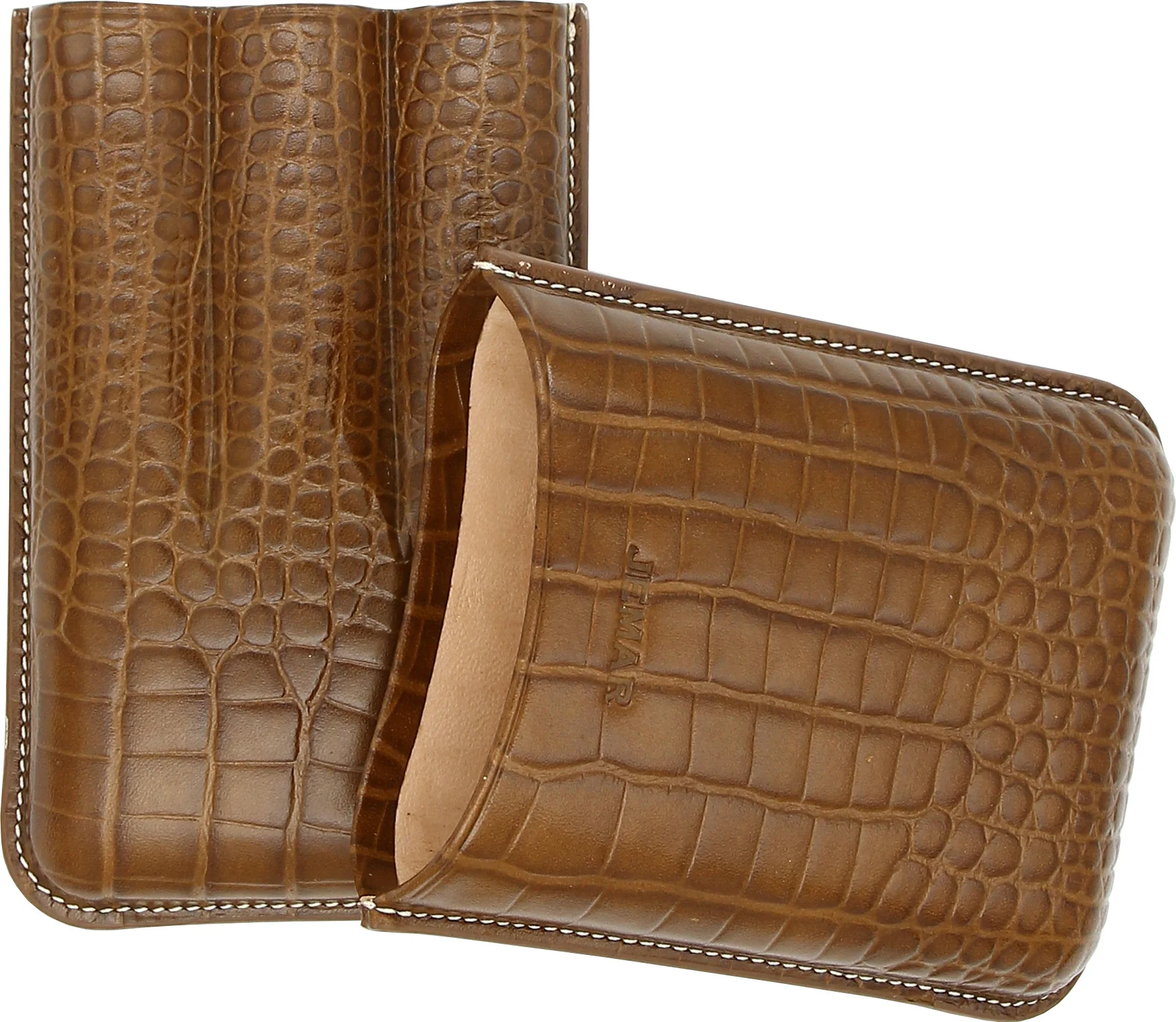 Jemar Leather Cigar Case for Three Cigars, Crocodile Skin, Camel