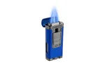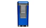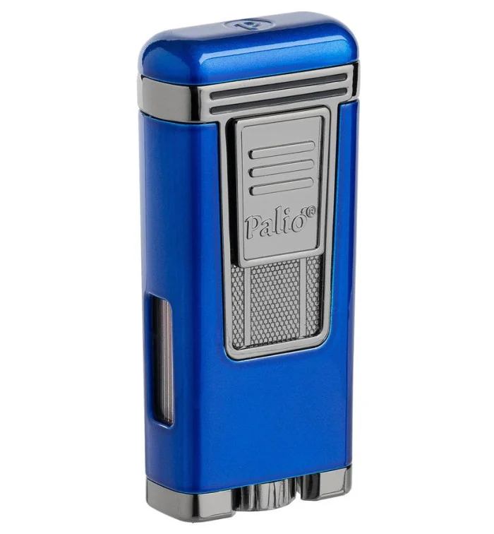 Palio Polaris Jet Lighter in Blue is a high-performance jet lighter with a sleek bliue finish and elegant silver accents. Featuring three powerful jet flames that merge into a reliable burner, this lighter offers consistent ignition for cigar enthusiasts. The ignition is shielded by a protective cap, keeping dust and lint away to ensure long-lasting performance. The Palio logo is prominently displayed on the front ignition switch, which ignites the lighter with a smooth downward slide. A large, transparent gas window on the left side allows for easy monitoring of the fuel level. Naturally, the lighter is refillable, and the flame intensity can be conveniently adjusted by hand at the base of the lighter without additional tools.