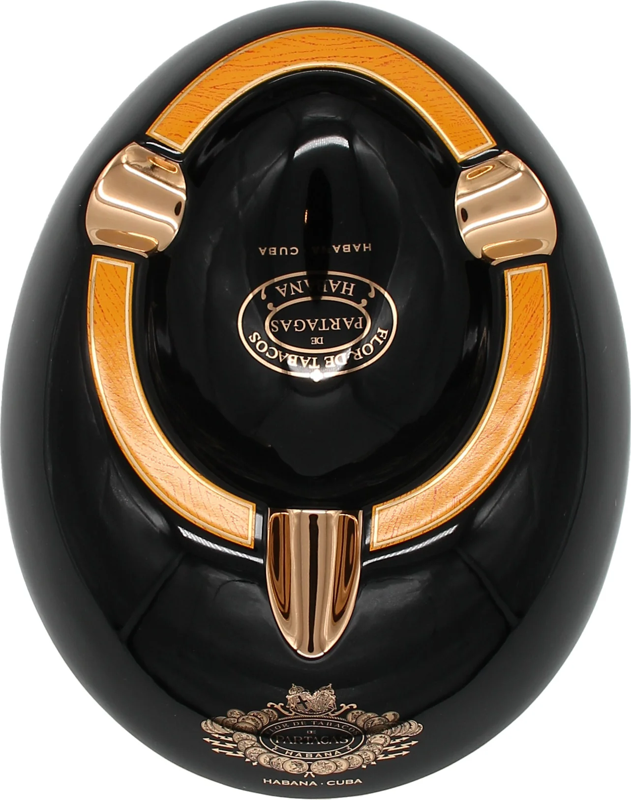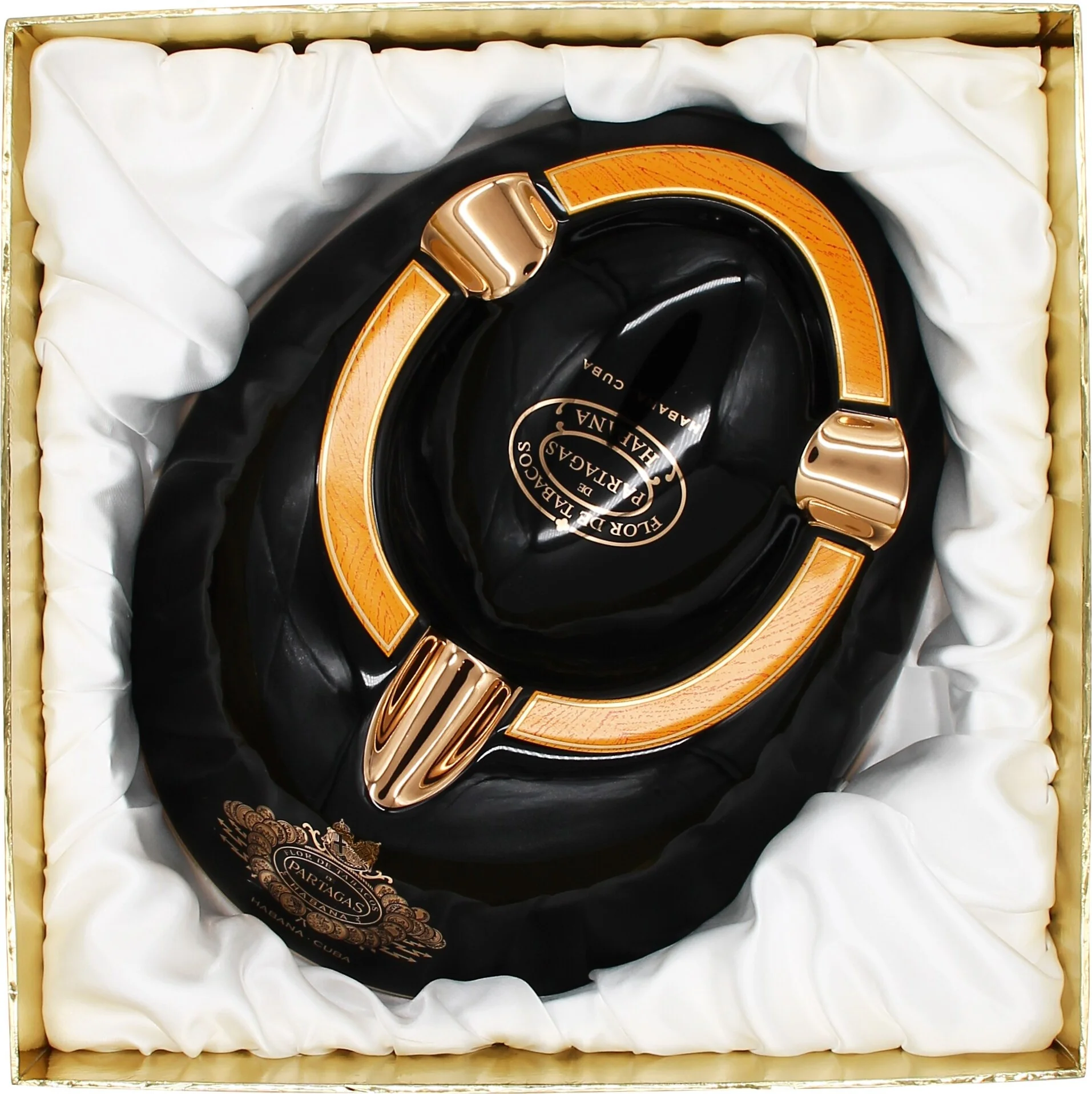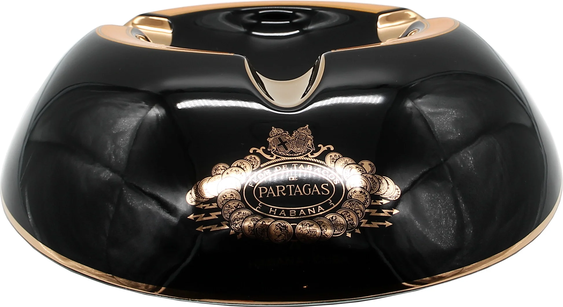 - Black porcelain cigar ashtray with Partagás' signature accents