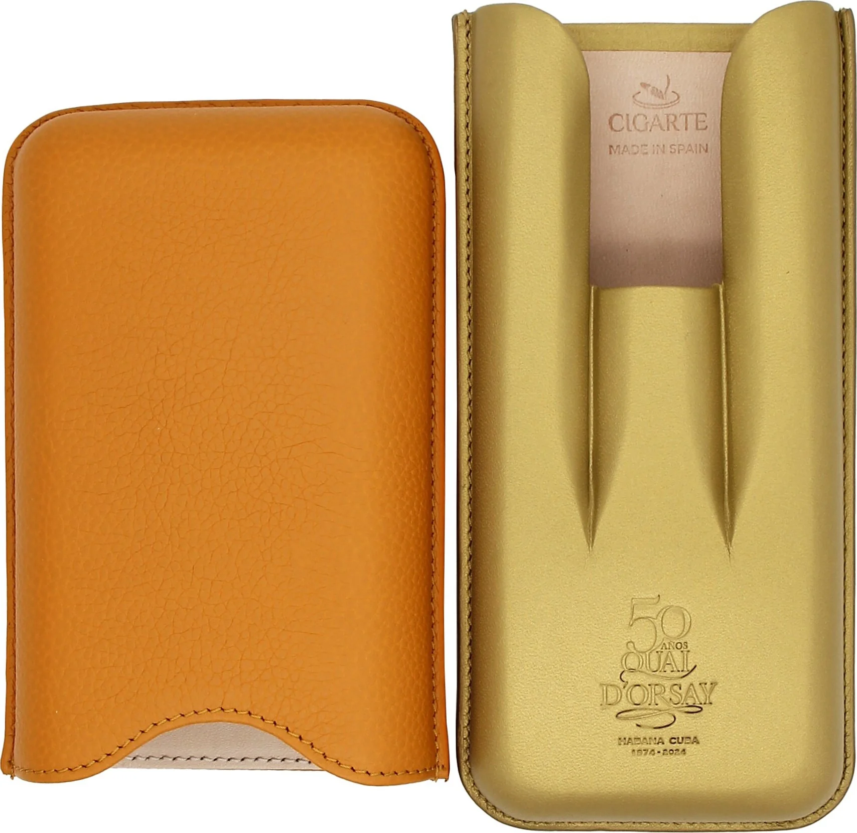 - Manufacturing and Design: The case was manufactured by the Spanish company Cigarte in Spain. It features a color combination of orange and elegant gold, with embossed leather on the top and smooth leather on the bottom.