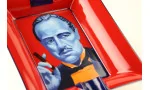 The Siglo Marlon Brando Ashtray is a bold cigar ashtray in striking red and blue, featuring an iconic image of Marlon Brando holding a cigar with unmistakable enjoyment. Known for his passion for cigars, Brando embodies the art of savoring a moment of relaxation. This ashtray is a true statement piece that draws attention wherever it is placed.