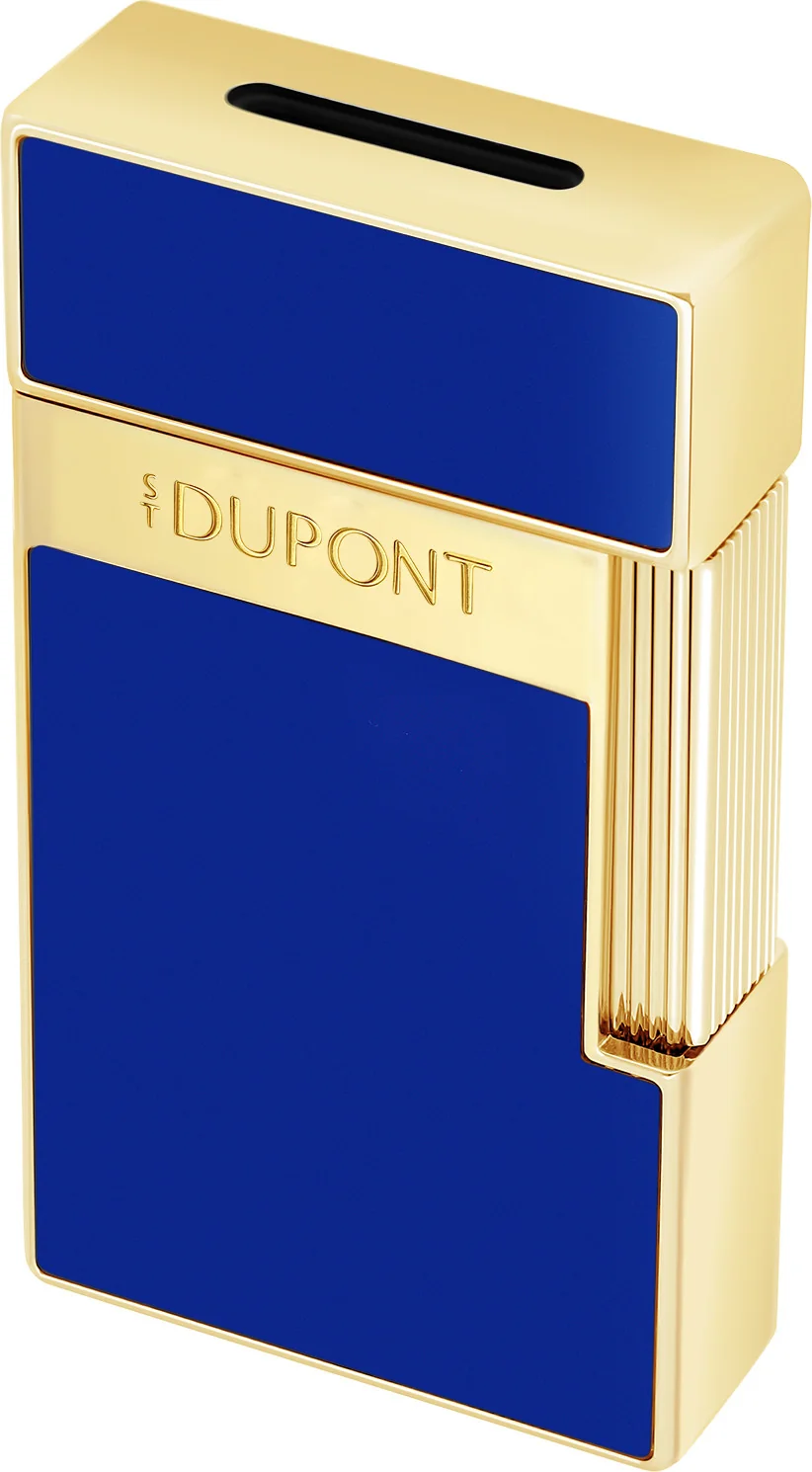Launched in 2024, the S.T. Dupont Biggy Collection presents a new line of premium jet lighters inspired by the iconic Ligne 2 model. Key features such as the shape of the ignition mechanism, the finishes, and the design are retained. The S.T. Dupont Biggy Lighter Natural Lacquer Blue Gold combines modern design with practical functionality, perfect for discerning cigar lovers.