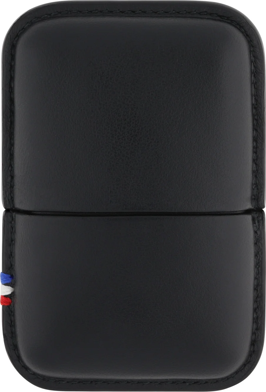 The S.T. Dupont Line 2 lighter case in black is an elegant and robust genuine leather case for your valuable Ligne 2 lighter from the French luxury brand S.T. Dupont. Ligne 2 lighters from Dupont are typically passed down through generations. All the better if you protect it permanently from external influences such as drops or scratches. This two-piece case was made in Spain from the finest smooth cowhide leather. The "Made in Spain" imprint can be seen on the inside of the top section. A beautiful decorative seam forms the outer frame of the lighter case, further enhanced with the brand's signature blue, white, and red stitching, signifying its French origin. The brand name is embossed on the front of the lower section of the case. The dimensions are approximately 8 x 5.5 x 2 cm. The product comes in elegant packaging, making it the ideal gift for owners of the Ligne 2 model. A protective cleaning cloth and the manufacturer's warranty card are included.