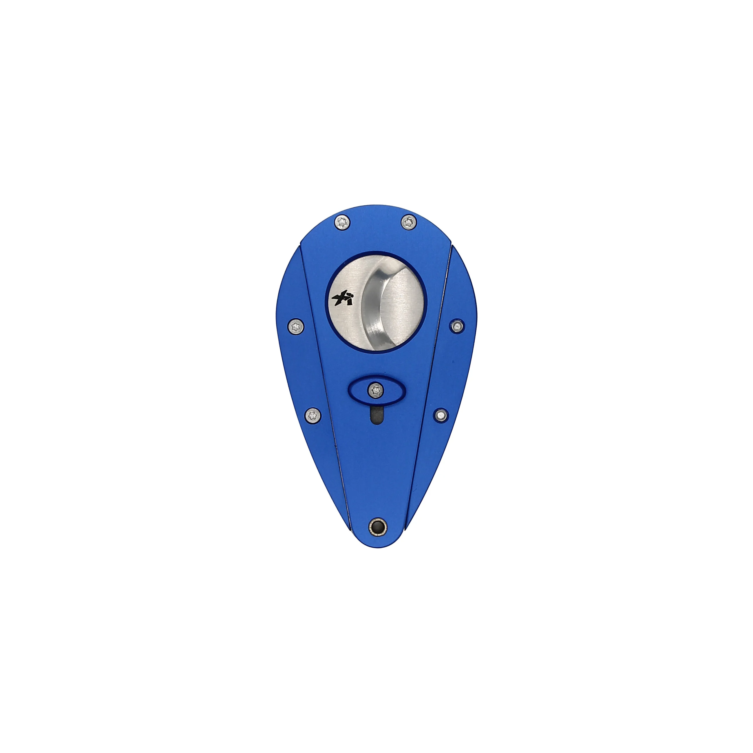 The anodized aluminum construction of this particular Xikar Xi1 Double Blade Cutter is colored in an eye-catching azure blue. Which, when combined with the bright stainless blades, in contrast to its ergonomic teardrop shape, is sure to make you smile.