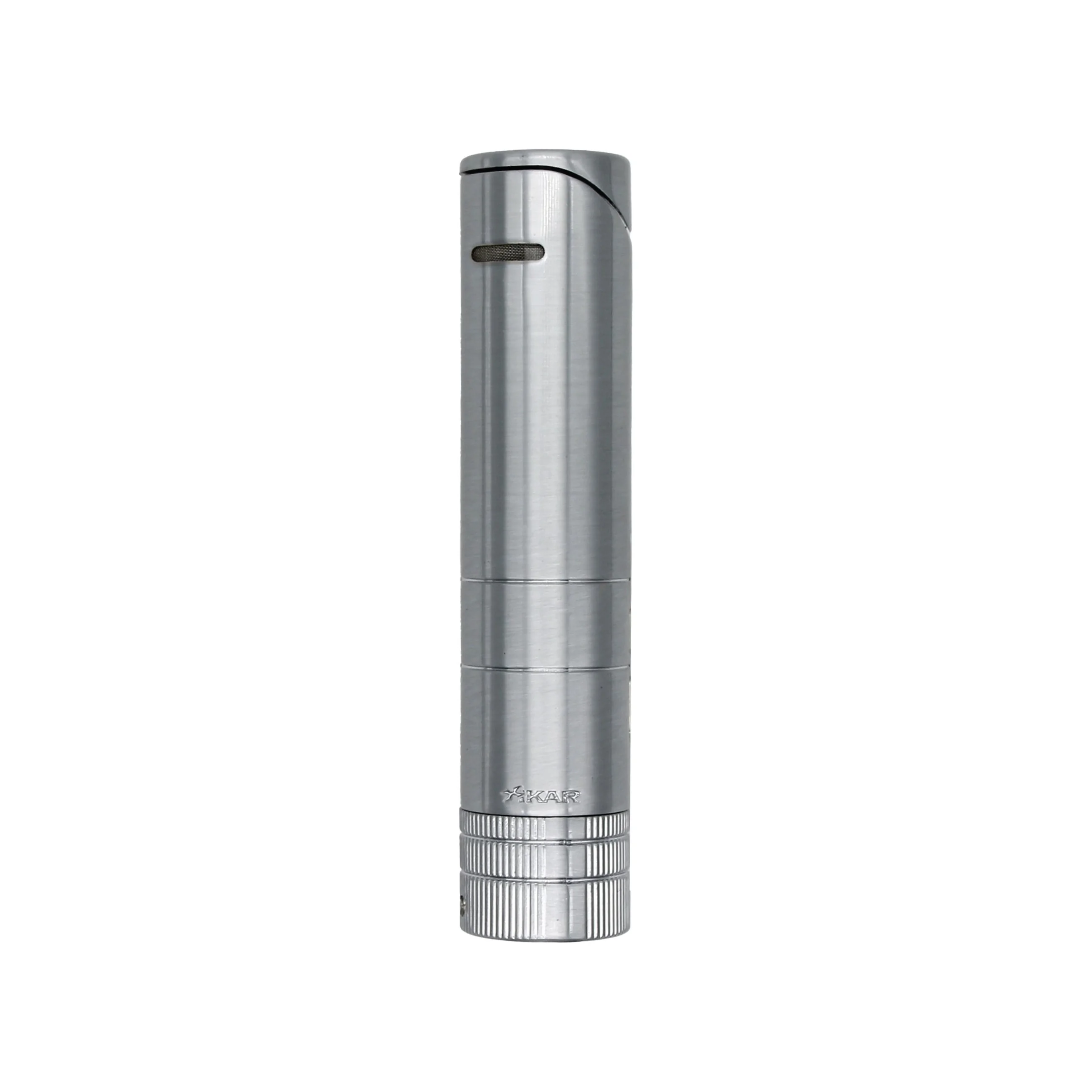 The Xikar 5x64 Turrim Lighter Silver draws attention with its silver finish and sophisticated round design. Sized at 5” x 64, the lighter will easily stow in a travel cigar case, while also serving as a wondrously stylish table lighter.