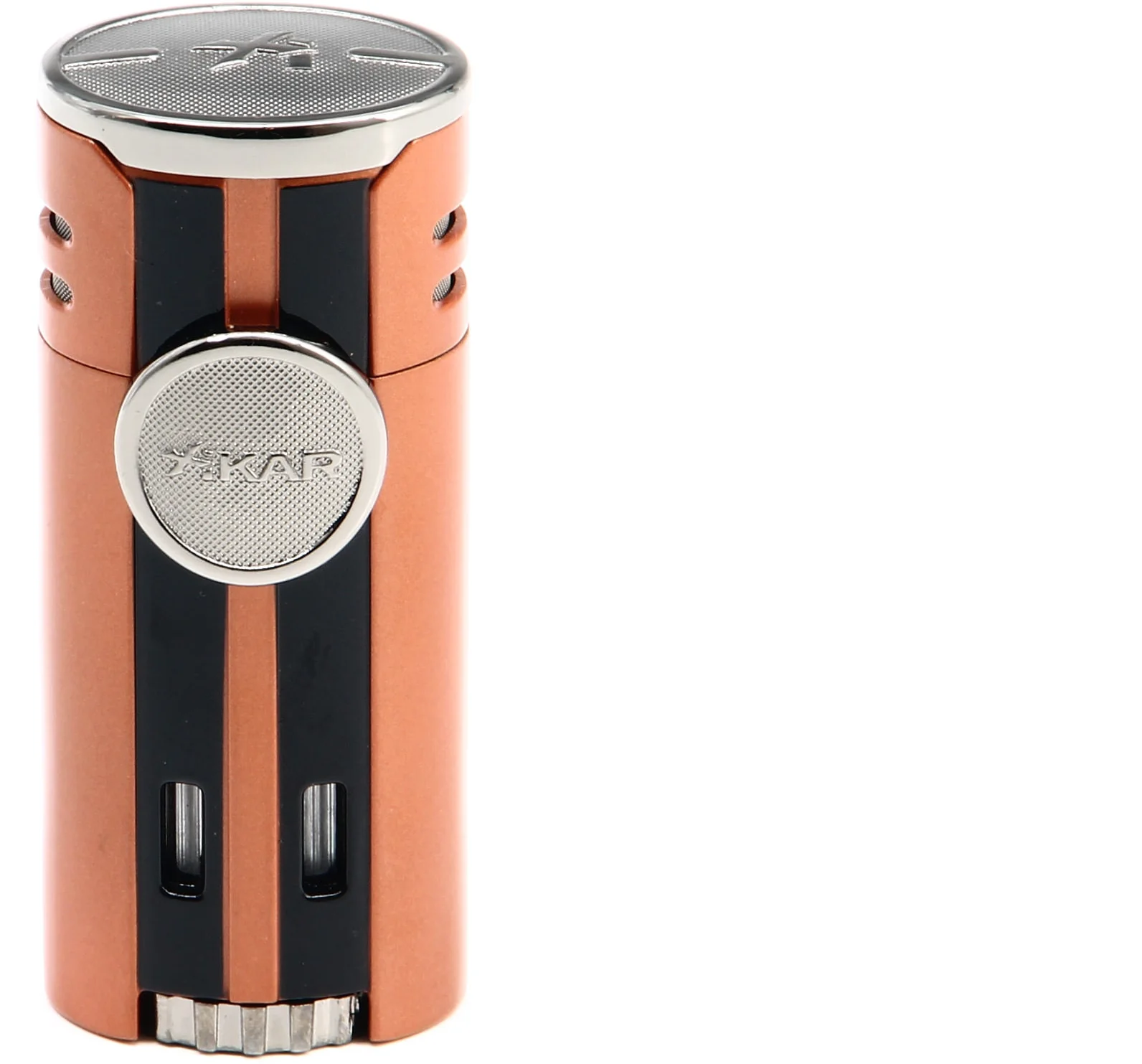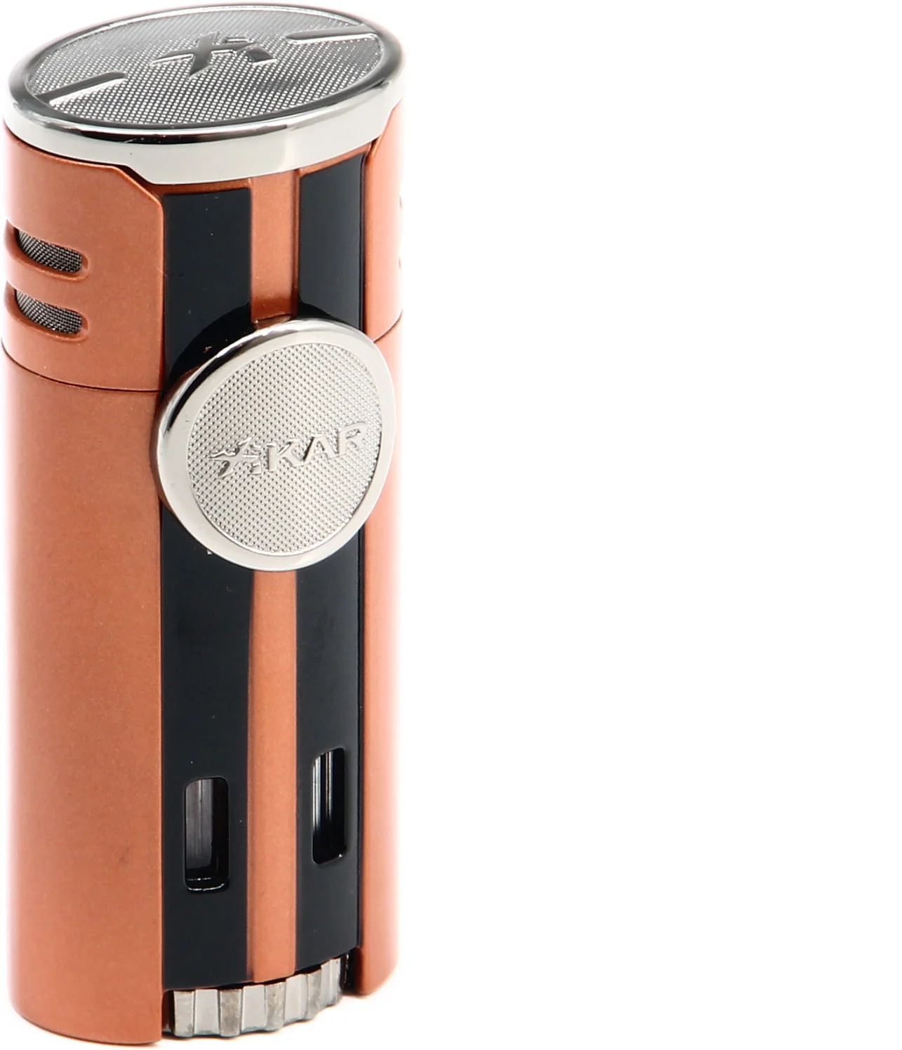 Inspired by the precision-engineered supercars of today, the Xikar HP4 Quad Lighter Orange takes the spotlight with authority and doesn’t let go. A unique chopper orange finish with chrome accents and louvered back panel makes the lighter the final word in style and contemporary design.