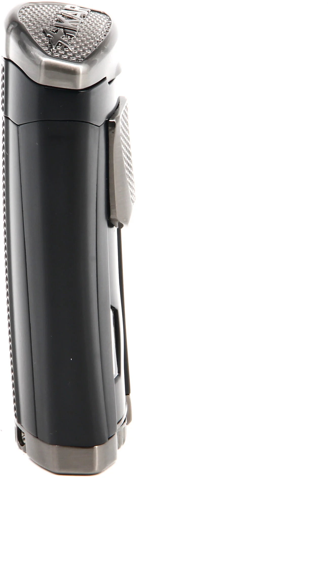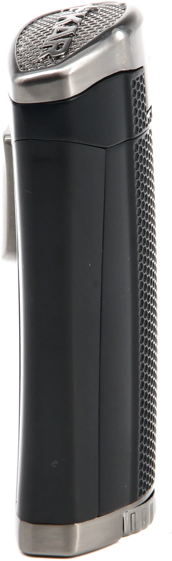 The HP3, aka the High-Performance Triple Flame, offers up a decidedly modern look with its classic matte black finish contrasting with chrome accents. Its sleek ergonomic contours make the lighter as comfortable to hold as it is eye-catching. It’s a real stunner!